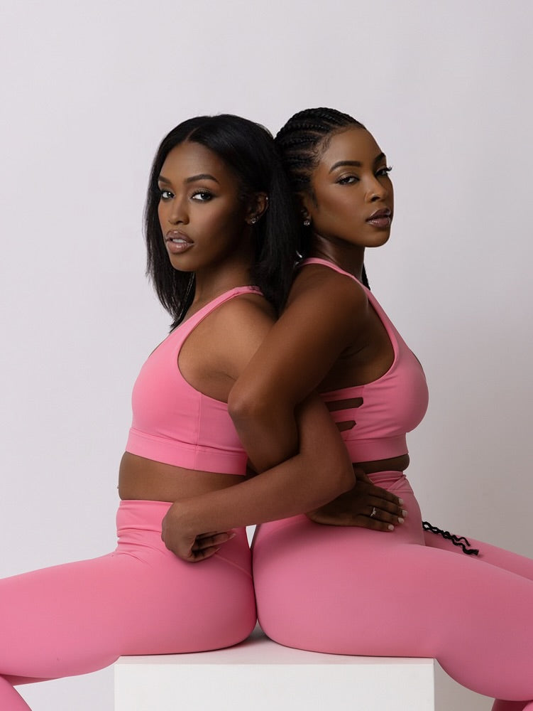 Look and feel your best in the Persian Pink Set. Crafted with a flattering v-dip detail band, sculpt fabric and a nylon elastane combination to flatter your curves and provide light compression, this luxurious set offers superior support and comfort. With a quick-drying, moisture-wicking fit and built-in, removable padded bra, you'll look chic and stay cool no matter the activity.